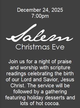 Thank you for visiting Salem Baptist Church’s website! If you are looking for an authentic, truth loving body of believers in Jesus Christ, then this is the place for you. Our website exists to get you connected to what is going on within the church. Check back often, so you do not miss any new opportunities to learn, fellowship, and serve in the House of God. If you have any questions, use the contact page, and we will get back to you as soon as possible, and if you haven’t been keeping up with our Sunday messages, check out the “Sermons” page to catch up. Have a blessed day!